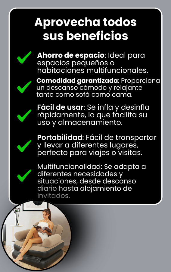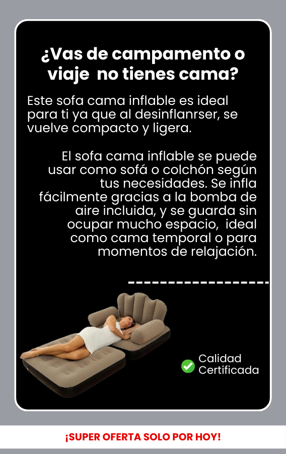 Nuestra Sofa Cama está fabricada con materiales resistentes, como acero y plásticos de alta calidad, lo que le garantiza durabilidad y estabilidad. Además, es ligera y fácil de mover según sea necesario.